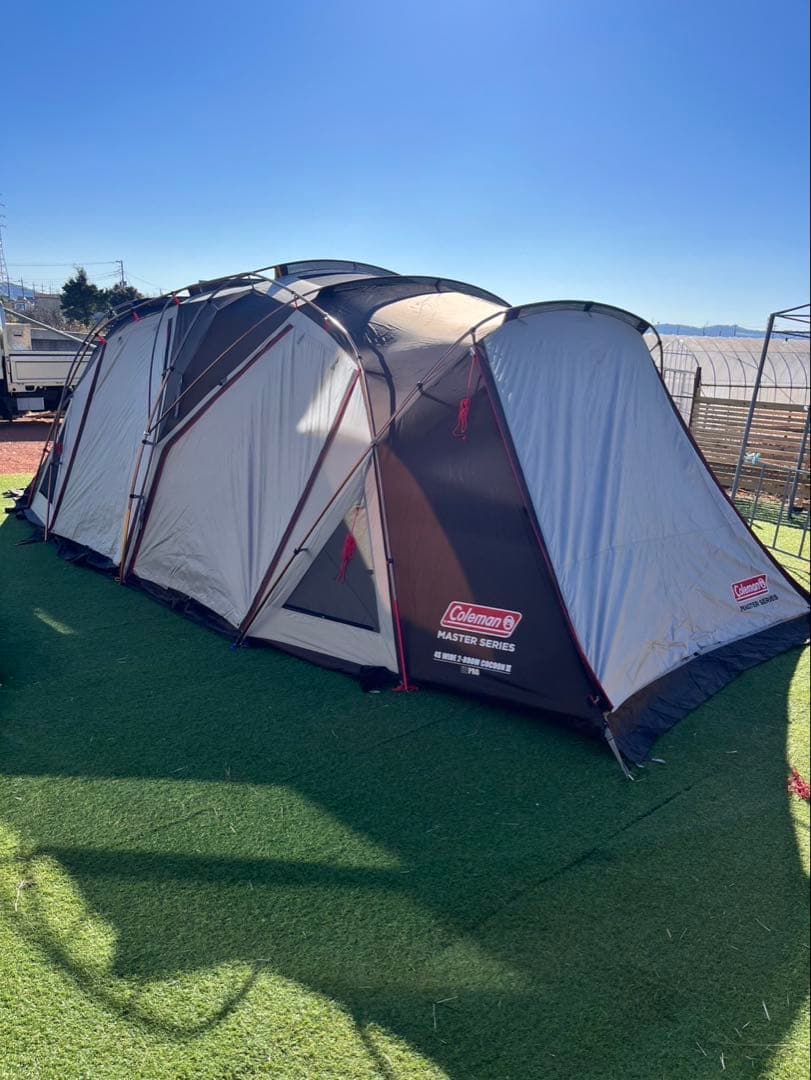 Coleman(コールマン) 2ルームハウス用テントシートセット 2000031860新品未開封未使用です。サイズ:インナーシート/約310×230cm、グランドシート/約300×215cm重量:インナーシート/約2.4kg、グランドシート/約0.8kg材質:インナーシート/68Dポリエステルタフタ、PEスポンジ(厚さ約4mm)、PVC、グランドシート/ポリエチレンインナーテント対応サイズ:約320(前方幅)cm・約240~245(後方幅)cm×230(奥行)cm付属品:収納ケース